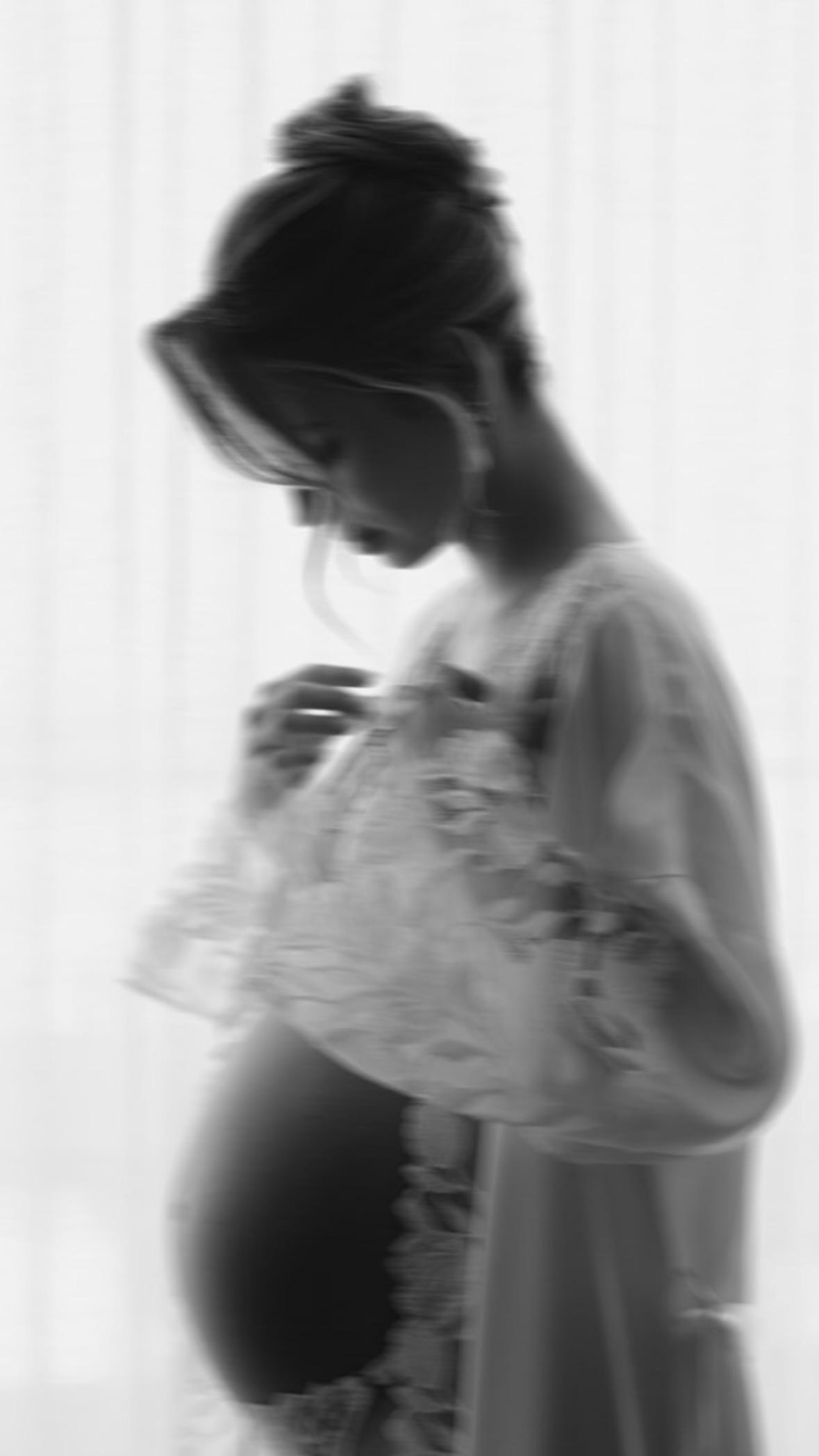Στις φωτογραφίες εμφανίζεται ντυμένη νύφη, με φουσκωμένη κοιλιά, αποπνέοντας ηρεμία και ευτυχία σε μία ιδιαίτερα προσωπική και συγκινητική στιγμή.