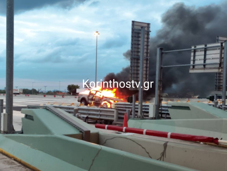 Φωτιά ξέσπασε αγροτικό όχημα μπροστά στα διόδια Καλαμακίου στην Κόρινθο.