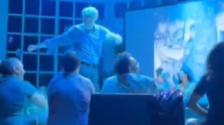 Με τη χαρακτηριστική ατάκα «Ηλία, ρίχτο!», η ηθοποιός κάλεσε τον βουλευτή του ΠΑΣΟΚ να συμμετάσχει στη σκηνή. Ο Γερουλάνος ανταποκρίθηκε, χορεύοντας ζεϊμπέκικο στους ήχους του τραγουδιού «Αυτός ο άνθρωπος, αυτός» της Ρίτας Σακελλαρίου.