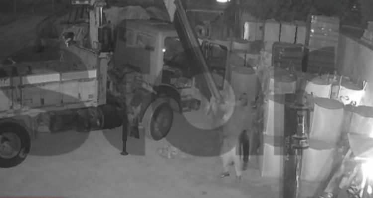 Το πρωί ο ιδιοκτήτης κατέγραψε με το κινητό του τηλέφωνο τις εικόνες. Το φορτηγό είχε αναποδογυρίσει και σε μικρή απόσταση ήταν και το ανυψωτικό μηχάνημα στην ίδια κατάσταση.