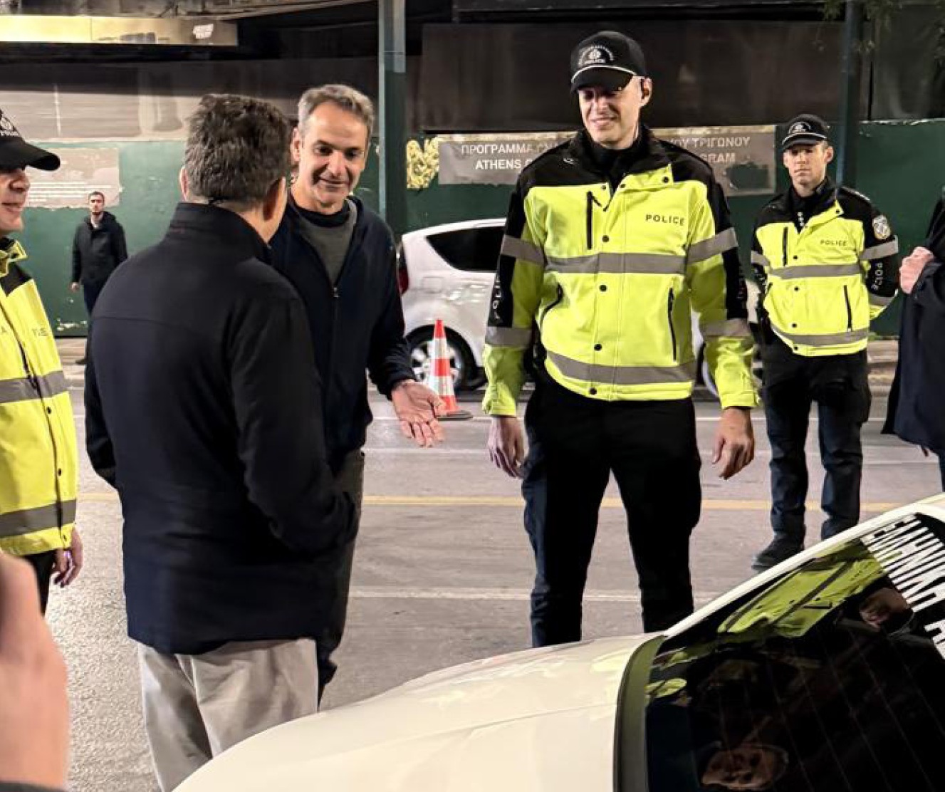 Ο πρωθυπουργός συνομίλησε με τους αστυνομικούς της Τροχαίας που σταματούν τους οδηγούς για ελέγχους.