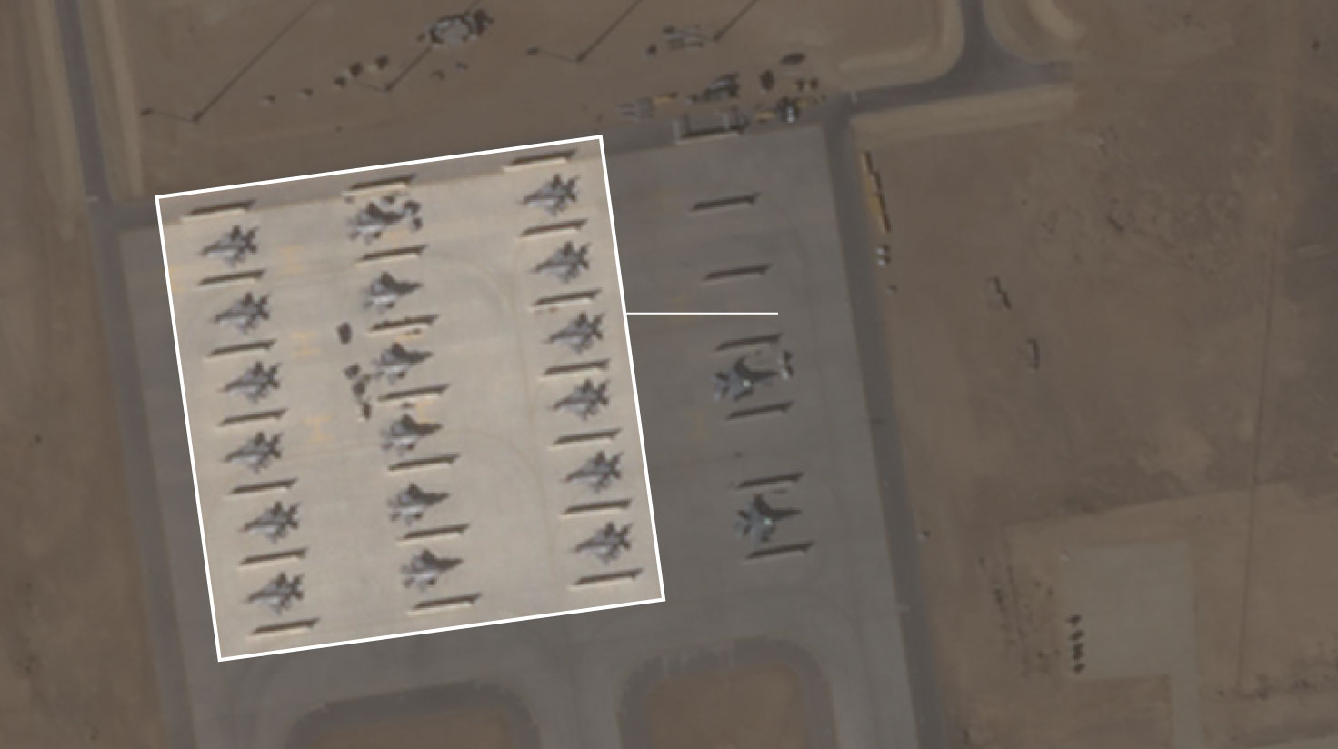 Στη βάση Muwaffaq Salti στην Ιορδανία υπάρχουν 60 F-15, F-35 και Growlers, 29 αεροσκάφη ανεφοδιασμού βρίσκονται στις βάσεις Prince Sultan στη Σαουδική Αραβία και Al-Udeid στα Ηνωμένα Αραβικά Εμιράτα, ενώ 108 αεροσκάφη έχουν καταγραφεί σε βάσεις στον Ινδικό Ωκεανό, την Ευρώπη και τη Μέση Ανατολή.