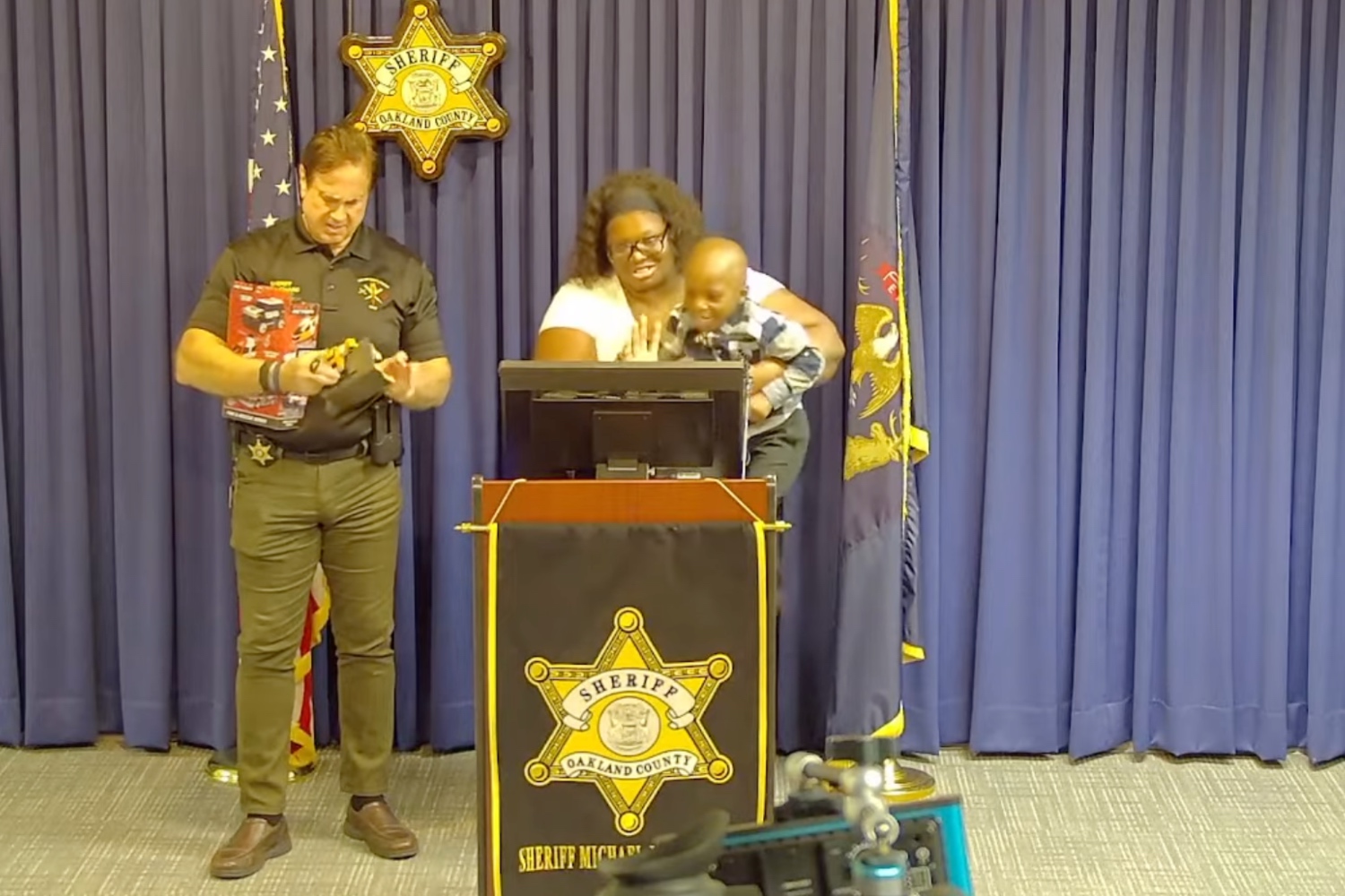 «Είσαι ο ήρωάς μου – ο σούπερ ήρωάς μου. Είμαι πολύ περήφανη για σένα. Μου έσωσες τη ζωή. Θα μπορούσα να μην ήμουν εδώ σήμερα». Από την πλευρά του, ο σερίφης Μπουσάρ ευχαρίστησε τη μητέρα και επαίνεσε τον μικρό Κόντι: «Μαμά, μόλις γνωρίσαμε τον γιο σου και είμαστε όλοι περήφανοι γι’ αυτόν. Έκανες εξαιρετική δουλειά. Χαιρόμαστε που είσαι καλά – και είμαστε ευγνώμονες για τον Κόντι».