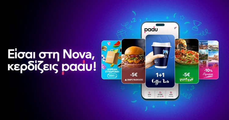 Η Nova, μέλος της United Group, του κορυφαίου παρόχου τηλεπικοινωνιών και media στη Νοτιοανατολική Ευρώπη, ενισχύει περαιτέρω το σχήμα επιβράβευσης των συνδρομητών της, σε συνεργασία με το padu, την καινοτόμα ελληνική εφαρμογή.