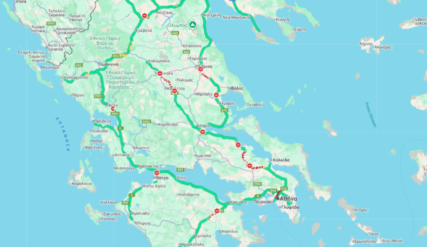 Διακοπή της κυκλοφορίας όλων των οχημάτων, για σήμερα Πέμπτη (08-01-2026) και για όσο χρονικό διάστημα απαιτηθεί, όλων των Ι.Χ.Ε. αυτοκινήτων, των φορτηγών και των λεωφορείων, στο τμήμα του Αυτοκινητόδρομου Π.Α.Θ.Ε. από τον Ανισόπεδο Κόμβο Πλατυκάμπου (Χ/Θ 352+918) μέχρι το νοτιότερο άκρο του Ανισόπεδου Κόμβου Πλαταμώνα (Χ/Θ 400+265) και στα δύο ρεύματα κυκλοφορίας καθώς και στην Π.Ε.Ο. Ευαγγελισμού –Λεπτοκαρυάς, από ώρες:
