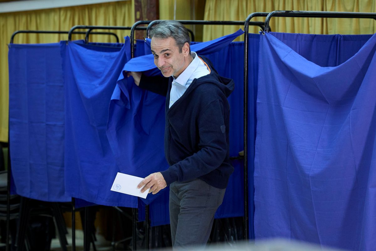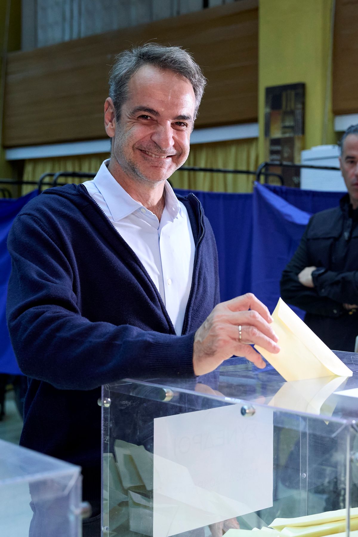 Το εκλογικό του δικαίωμα για τις εσωκομματικές διαδικασίες, άσκησε ο πρωθυπουργός και πρόεδρος της Νέας Δημοκρατίας, Κυριάκος Μητσοτάκης, συνοδευόμενος από τον γιο του, Κωνσταντίνο.