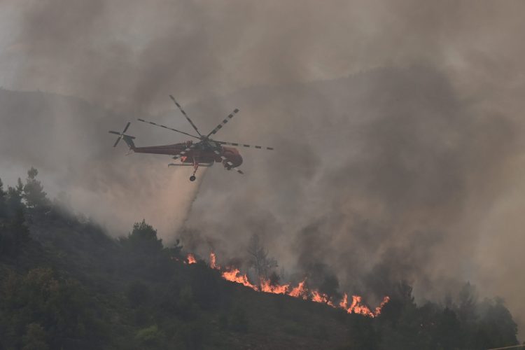 Στην φωτιά στην Παλαιά Πεντέλη επιχειρούν 40 πυροσβέστες με 15 οχήματα και εθελοντές καθώς και δυο αεροσκάφη και ένα ελικόπτερο.