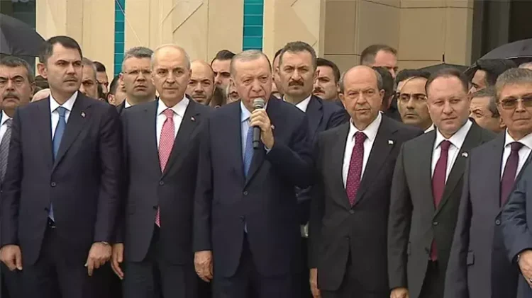 Στην κατεχόμενη Λευκωσία ταξίδεψε το μεσημέρι του Σαββάτου ο Πρόεδρος της Τουρκίας, Ρετζέπ Ταγίπ Ερντογάν και συνοδευόμενος από τον Τουρκοκύπριο ηγέτη, Ερσίν Τατάρ, μετέβη στον χώρο όπου τέλεσε τα εγκαίνια των κτηρίων του «Προεδρικού Μεγάρου» και της «Βουλής» που έχτισε η Τουρκία.