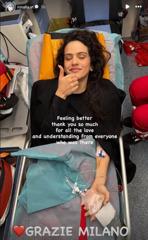 «Νιώθω καλύτερα, σας ευχαριστώ πολύ για όλη την αγάπη και την κατανόηση από όλους όσοι ήταν εκεί», έγραψε στα αγγλικά η Rosalia, η οποία το μεσημέρι της Πέμπτης δημοσίευσε μία φωτογραφία της από το φορείο και σημείωσε ότι αισθάνεται πλέον καλύτερα.