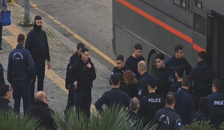 Η κατηγορούμενη εισήλθε στο κτίριο υπό ισχυρή αστυνομική συνοδεία, κρατώντας μπαστούνι και υποβασταζόμενη, καθώς αντιμετώπιζε δυσκολία στη βάδιση και χρειάστηκε βοήθεια για να προσεγγίσει την αίθουσα.