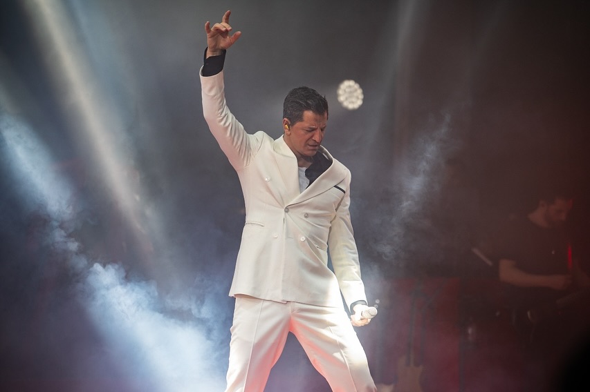 Παρά την πτώση, ο Σάκης Ρουβάς σηκώθηκε αμέσως, συνέχισε την παράσταση με ψυχραιμία, χωρίς να αφήσει το περιστατικό να επηρεάσει το πρόγραμμα.