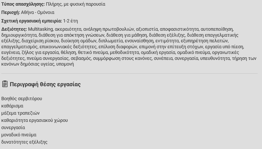 Τι χρειάζεται για να εργαστεί κανείς ως απλός βοηθός σερβιτόρου στο κέντρο της Αθήνας; Σύμφωνα με μια πρόσφατη αγγελία, περισσότερα απ’ όσα θα περίμενε κανείς.