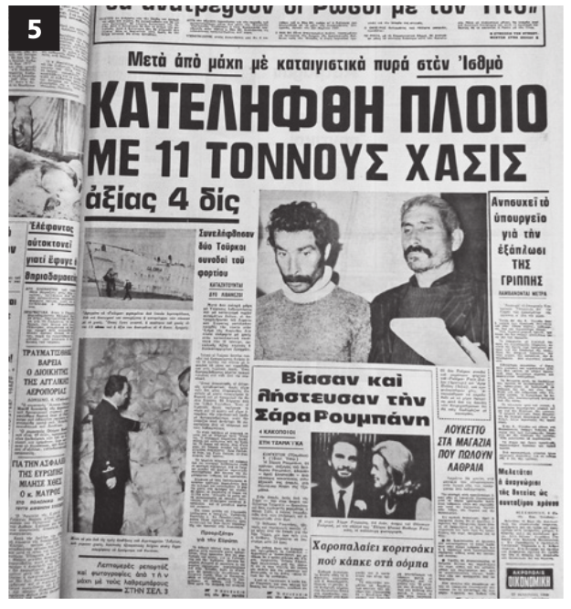 Το πρωϊ της 8ης Ιανουαρίου 1977 στα πρωτοσέλιδα όλων των ελληνικών εφημερίδων δέσποζε ένα και μόνον θέμα: το βαπόρι που την προηγούμενη μέρα «είχε πιαστεί στην Κορινθία». Το υπό κυπριακή σημαία μότορσιπ «Γκλόρια», με τους 11 τόνους κατεργασμένου χασίς, μια ποσότητα από τις μεγαλύτερες που μέχρι τότε είχαν κατασχεθεί στα παγκόσμια χρονικά. Λίγες μέρες αργότερα θα κυκλοφορούσε «Το βαπόρι απ’ την Περσία» που «πιάστηκε στην Κορινθία, τόνοι έντεκα γεμάτο, με χασίσι μυρωδάτο…», το 45άρι σε μουσική και στίχους του Βασίλη Τσιτσάνη, ο οποίος είχε εμπνευστεί (και έγραψε σε δίσκο) το πασίγνωστο πια τραγούδι μέσα σε μια βραδιά.