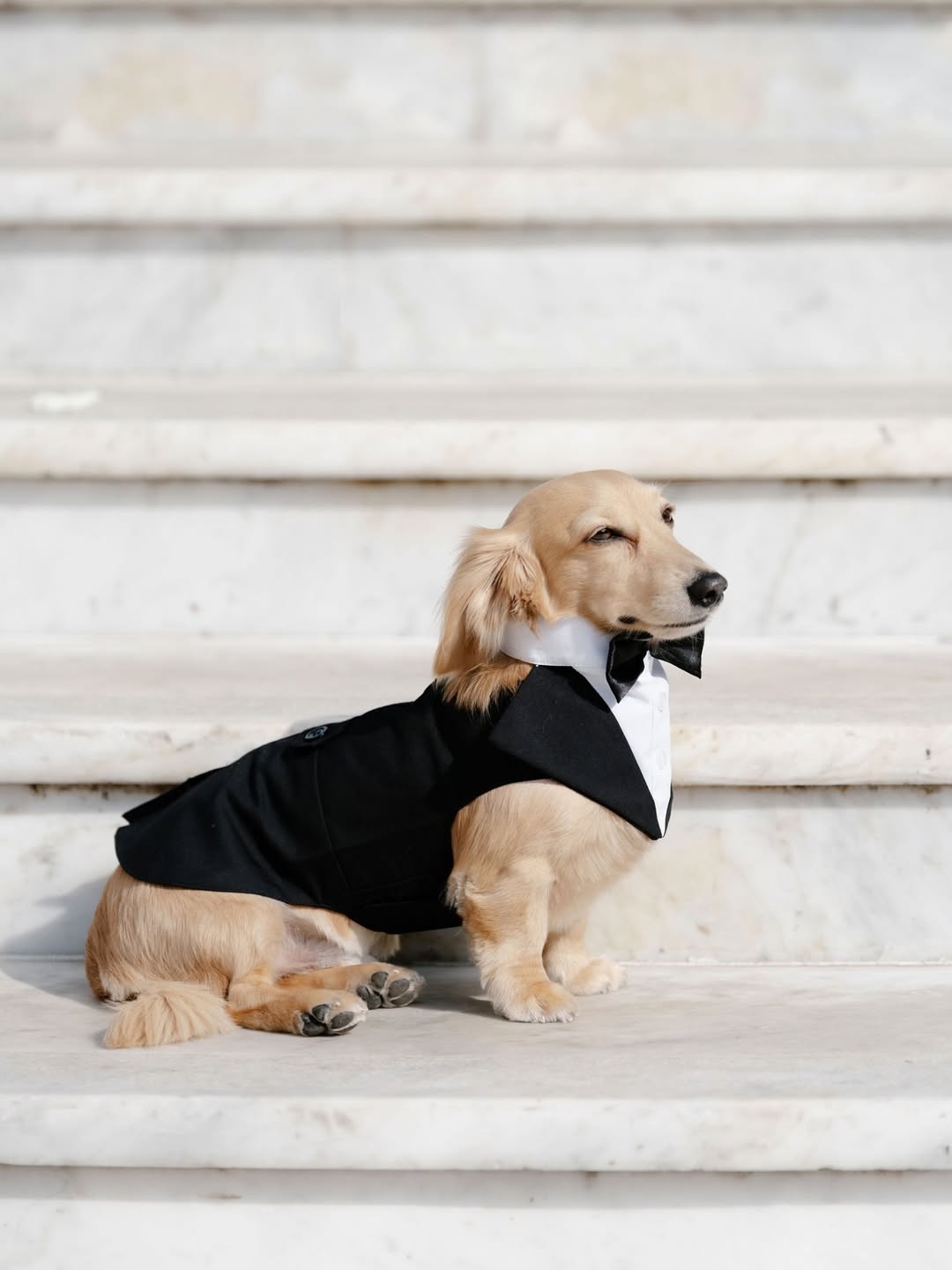 Από τη γιορτή δεν θα μπορούσε να λείπει ο Leo, ο διάσημος σκύλος του ζευγαριού, ο οποίος πόζαρε γεμάτος χάρη δίπλα στους νεόνυμφους.