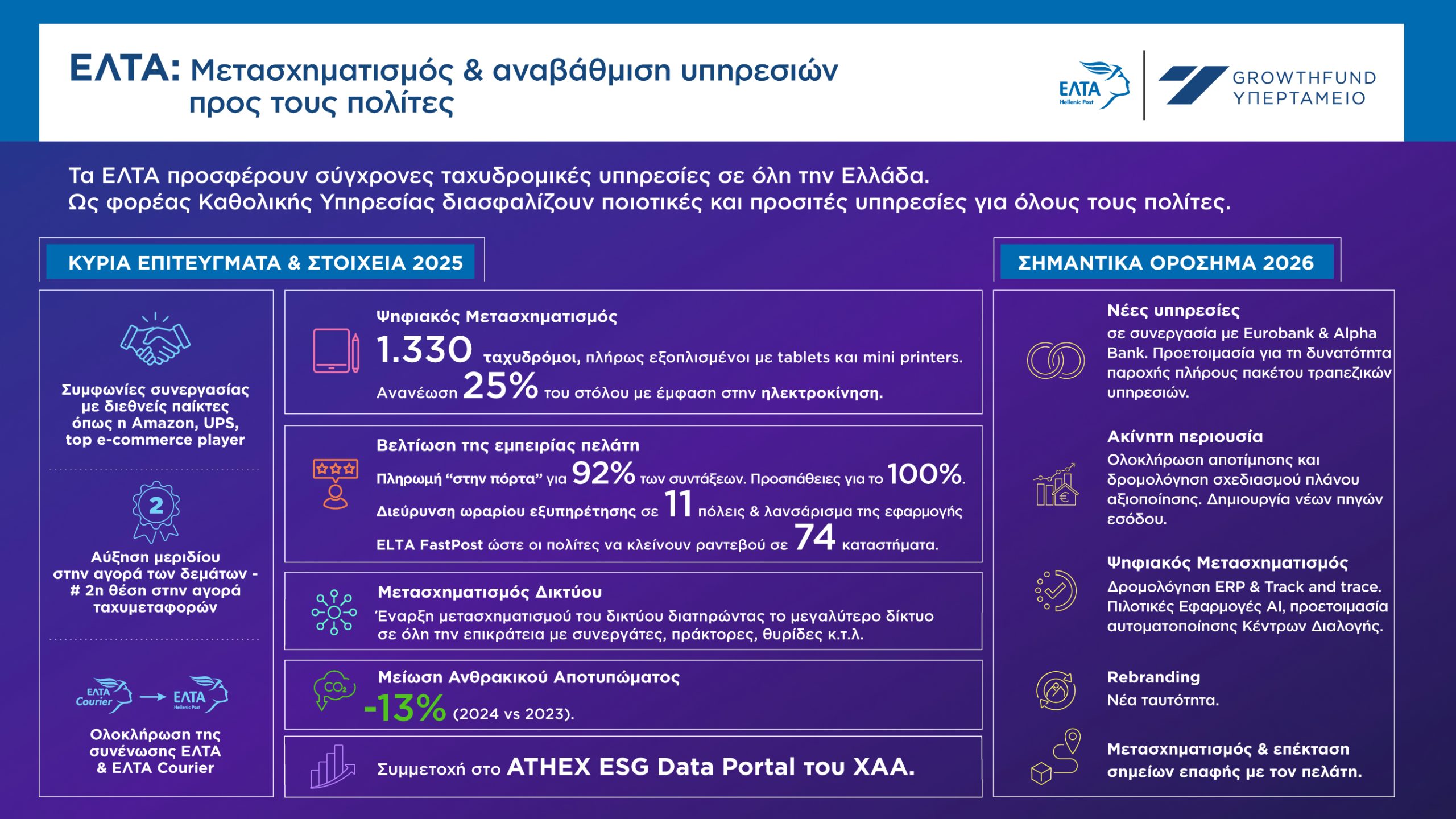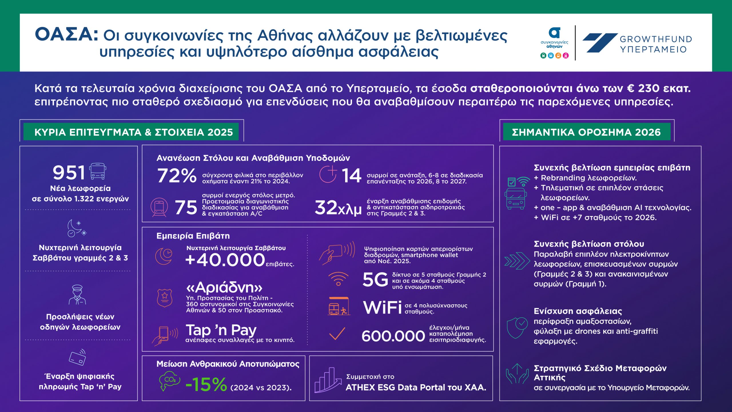 Ενδεικτικά, στον ΟΑΣΑ ανανεώνεται ο στόλος με εκατοντάδες νέα λεωφορεία, ενώ τα ΕΛΤΑ υλοποιούν εκτεταμένο ψηφιακό μετασχηματισμό.