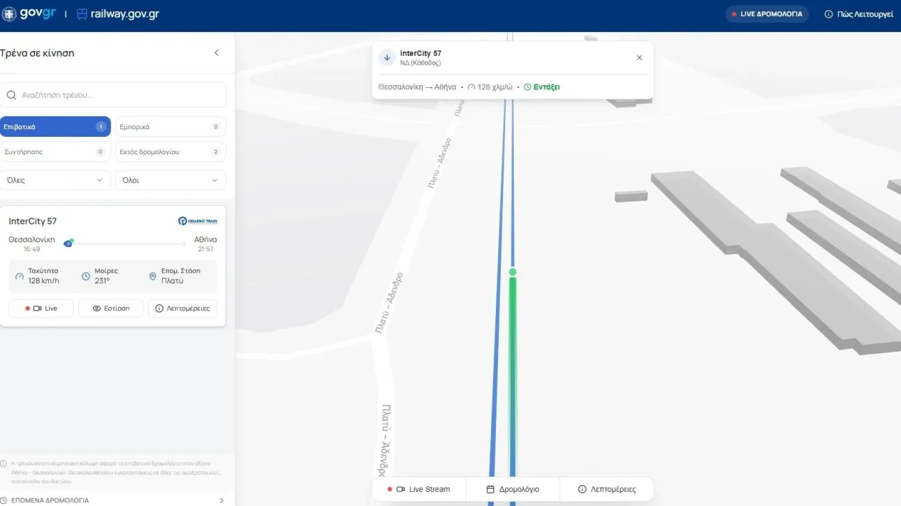 Διαφάνεια προς τον πολίτη – Η πορεία των τρένων και live video streaming railwaygov livestream