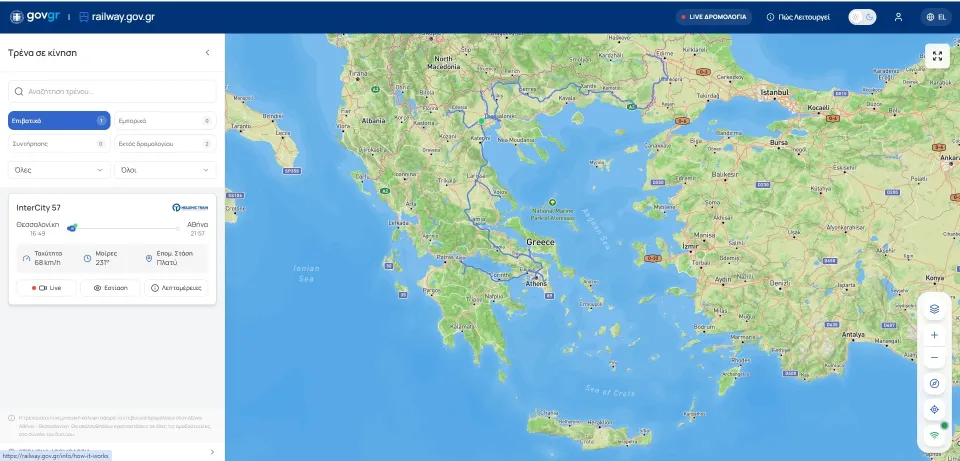 - Τη ζωντανή θέση των τρένων στον χάρτη,