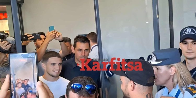Το κλίμα στο Αεροδρόμιο Μακεδονία ήταν εορταστικό με κοσμοσυρροή από οπαδούς του Δικεφάλου, οι οποίοι με ενθουσιασμό περίμεναν τον 22χρονο ποδοσφαιριστή.