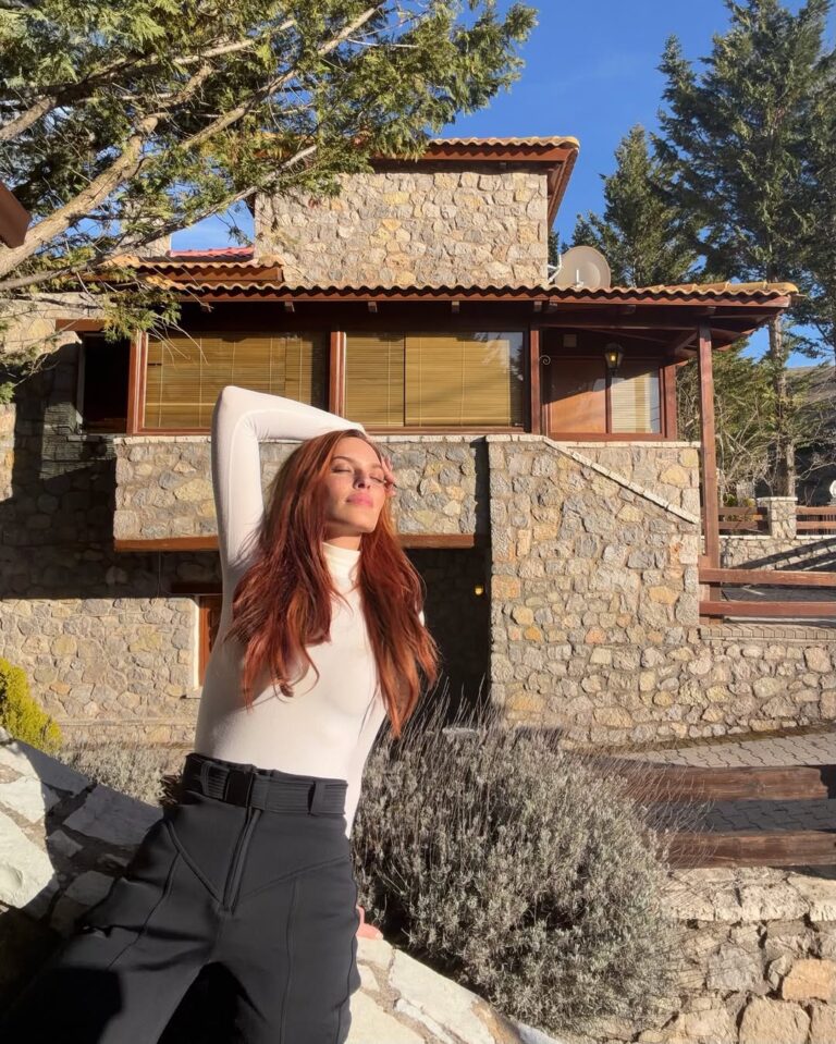 Το πρόγραμμα περιλάμβανε στάσεις στο χιονοδρομικό κέντρο, παιχνίδια στο χιόνι και χαλαρά γεύματα, με την ίδια να δείχνει ιδιαίτερα ευδιάθετη και ανανεωμένη.