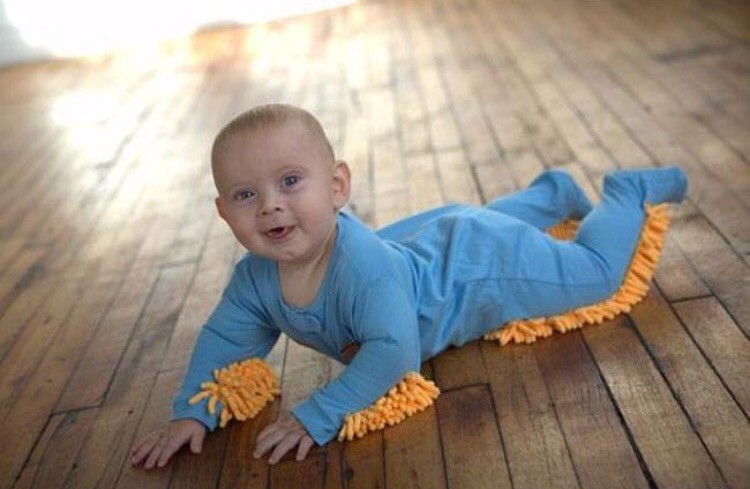 Συγκεκριμένα είναι ένα φορμάκι-σκουπάκι, το οποίο όσο το μωρό σέρνεται στο πάτωμα καθαρίζει κιόλας. Εξάλλου πόσες φορές έχετε πιάσει τον εαυτό σας να λέει «Σκούπισες όλο το πάτωμα, πάνε τα ρούχα». Ε λοιπόν τώρα γίνεται πράξη το σκούπισμα.
