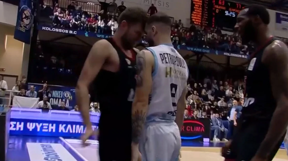 Ο αγώνας Κολοσσού Ρόδου – Ολυμπιακού ήταν ιδιαίτερα φορτισμένος, καθώς ένα επεισόδιο ανάμεσα στον Ανδρέα Πετρόπουλο και τον Σάσα Βεζένκοβ – του έριξε μπουνιά που βρήκε ξώφαλτσα τον παίκτη των γηπεδούχων – οδήγησε στην αποβολή του δεύτερου.