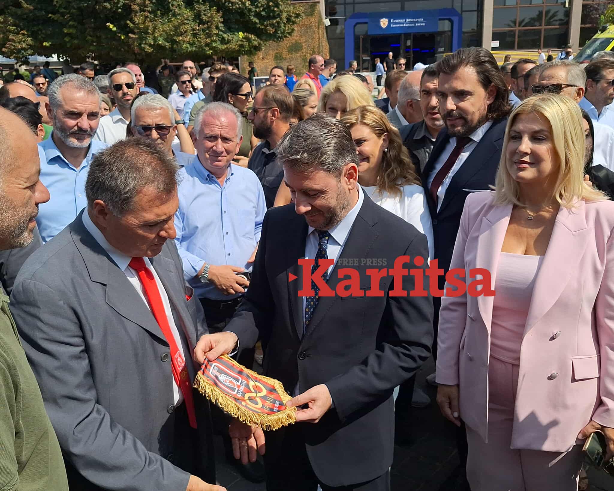 Κατά την βόλτα έκανε μια στάση και στο περίπτερο του Απόλλωνα Καλαμαριάς, όπου του χάρισαν ένα αναμνηστικό της ομάδας και έβγαλαν φωτογραφίες με τους εκθέτες.