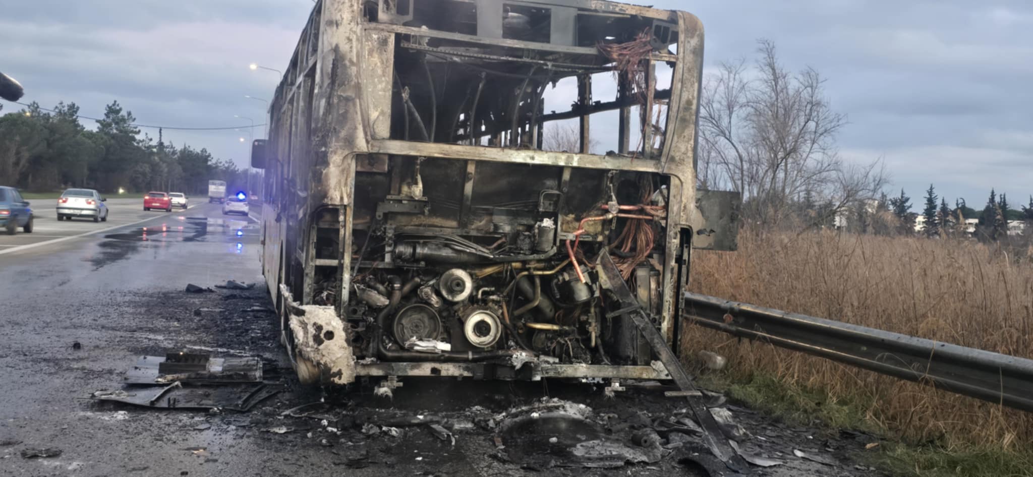 Η φωτιά εκδηλώθηκε στην ΠΑΘΕ, στον έξοδο για το Διεθνές Πανεπιστήμιο Ελλάδος (ΔΙΠΑΕ). Οι τρεις επιβάτες και ο οδηγός εγκατέλειψαν εγκαίρως το όχημα, το οποίο κάηκε ολοσχερώς.