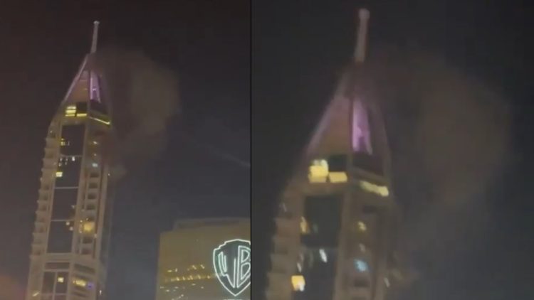 Βίντεο που κυκλοφορούν στα κοινωνικά δίκτυα δείχνουν τον καπνό να υψώνεται από τον ουρανοξύστη της Μαρίνας, ενώ οι αρχές των Εμιράτων παραμένουν σε αυξημένη επιφυλακή.