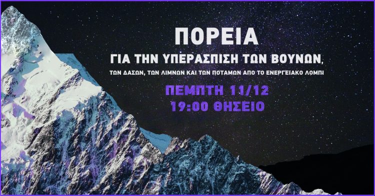 Με αφορμή την Παγκόσμια Ημέρα Βουνού, κινήσεις πολιτών και συλλογικότητες από όλη την Ελλάδα διοργανώνουν συγκέντρωση στο Θησείο αύριο Πέμπτη 11 Δεκεμβρίου, στις 19:00, με στόχο την ανάδειξη της –όπως υποστηρίζουν– κλιμακούμενης περιβαλλοντικής υποβάθμισης στην Ελλάδα τα τελευταία χρόνια.