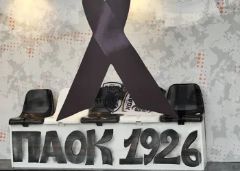 Εκατοντάδες φίλοι του ΠΑΟΚ καταφθάνουν στο γήπεδο για να αφήσουν λουλούδια, κεράκια και κασκόλ, τιμώντας τη μνήμη των επτά νέων που έχασαν τη ζωή τους.