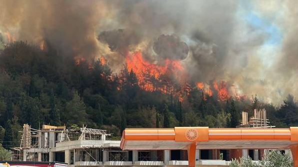 Ισχυρές επίγειες δυνάμεις και τρία πυροσβεστικά ελικόπτερα επιχειρούν από αέρος και εδάφους, δίνοντας μάχη με τον χρόνο για να περιορίσουν τη φωτιά προτού φτάσει σε σπίτια και υποδομές.