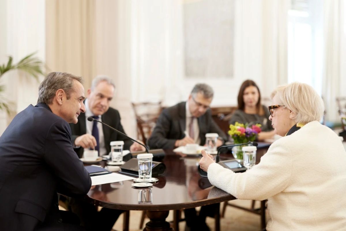 Στο Μέγαρο Μαξίμου πραγματοποιήθηκε συνάντηση μεταξύ του Πρωθυπουργού, Κυριάκου Μητστάκοη και της υπουργού Ενόπλων Δυνάμεων της Γαλλίας, Κατρίν Βοτρέν.