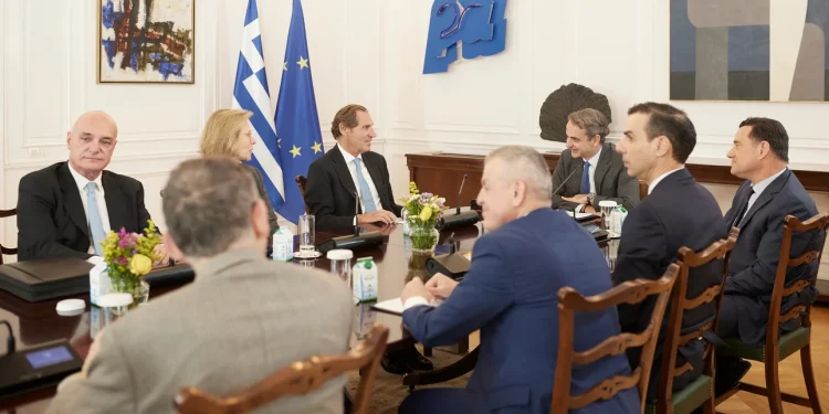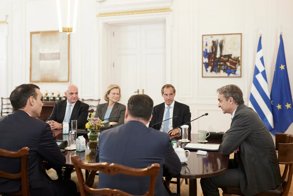 Υπό την προεδρία του Πρωθυπουργού Κυριάκου Μητσοτάκη πραγματοποιήθηκε το μεσημέρι στο Μέγαρο Μαξίμου ευρεία σύσκεψη, με αποκλειστικό αντικείμενο τον συντονισμό και την υλοποίηση της σημαντικής δωρεάς του Ιδρύματος Παύλου και Αλεξάνδρας Κανελλοπούλου για την επέκταση και τον εκσυγχρονισμό του νοσοκομείου ΚΑΤ.