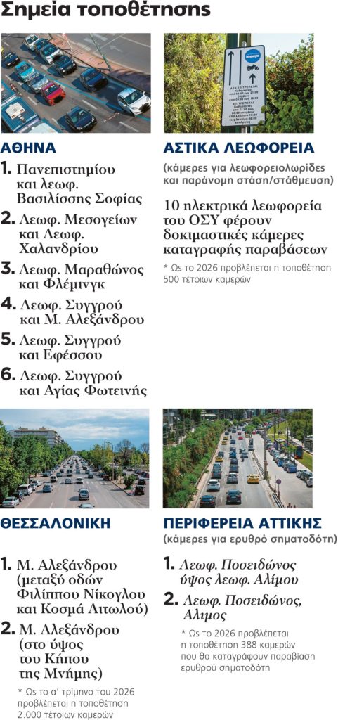 Οι νέες κάμερες θα καταγράφουν παραβάσεις όπως η παραβίαση ερυθρού σηματοδότη και η υπέρβαση ταχύτητας, ενώ 500 κινητές μονάδες θα τοποθετηθούν σε οχήματα για την καταγραφή παραβάσεων σε πραγματικό χρόνο. Η πλήρης εγκατάσταση αναμένεται να ολοκληρωθεί το 2026, εφόσον δεν υπάρξουν καθυστερήσεις.
