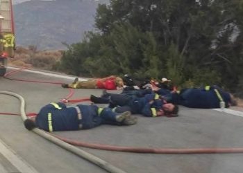 Οι εξουθενωμένοι πυροσβέστες παίρνουν μια ανάσα πριν ξαναριχτούν στη μάχη με τις φλόγες στη Χίο Συγκλονίζει το στιγμιότυπο με τους ...