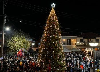 Φωταγωγήθηκε το πρώτο χριστουγεννιάτικο δέντρο της χώρας στον Ταξιάρχη Χαλκιδικής