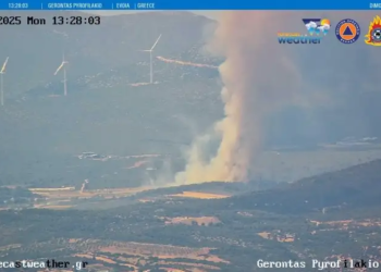 Οι ισχυροί άνεμοι που πνέουν στην περιοχή συνέβαλαν στην ταχεία εξάπλωση της φωτιάς Ανησυχητική παραμένει η κατάσταση στη χώρα μας, ...