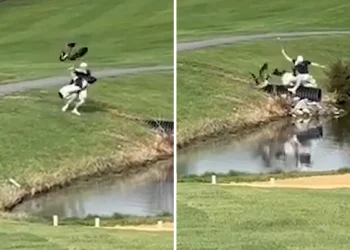 To βίντεο με την χήνα που έγινε viral! Επιτίθεται σε παίκτη του γκολφ και τον ρίχνει σε λίμνη