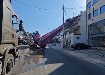 Υποχώρησε το έδαφος στο σημείο που βρισκόταν το βαρύ μηχάνημα Μεγάλη επιχείρηση της Πυροσβεστική στην οδό Αρκαδία στο Περιστέρι, όπου ...