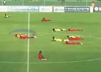 Κανένας δεν τραυματίστηκε Με μία πρωτόγνωρη εικόνα ήρθαν αντιμέτωποι οι φίλαθλοι όταν στην πόλη Μπαμπάτι της Τανζανίας, οι ποδοσφαιριστές ξάπλωσαν ...