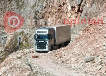 Η νταλίκα παρέμεινε εγκλωβισμένη όλη τη νύχτα, καθώς βράχοι φράζουν το δρόμο και η όπισθεν είναι ιδιαίτερα δύσκολη Σοβαρό περιστατικό ...
