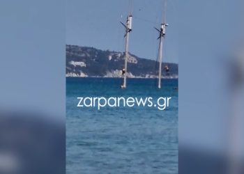 Νεαροί πηδούν στη θάλασσα από κατάρτια βυθισμένου ιστιοφόρου στα Χανιά! To μεσημέρι της Κυριακής στην παραλία του Βλητέ στα Χανιά, ...