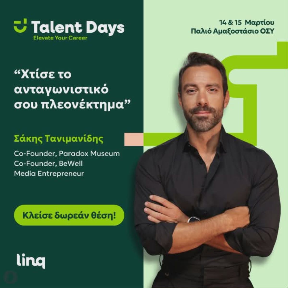 Η τέταρτη χρονιά των Talent Days της linq πλησιάζει και φέτος θα διεξαχθούν σε έναν νέο, εντυπωσιακό χώρο στην Αθήνα, προσφέροντας ένα ευρύ φάσμα εταιρειών και περισσότερες ευκαιρίες από ποτέ.