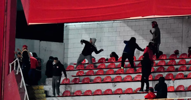 Όλα ξεκίνησαν όταν οπαδοί της Ουνιβερσιδάδ πήραν ένα πανό των Αργεντινών και άρχισαν να πετούν αντικείμενα με την κατάσταση να ξεφεύγει άμεσα. Οι εικόνες που μεταδίδονται στο διαδίκτυο προκαλούν σοκ και μάλιστα ένας άνθρωπος έπεσε από το δεύτερο διάζωμα.