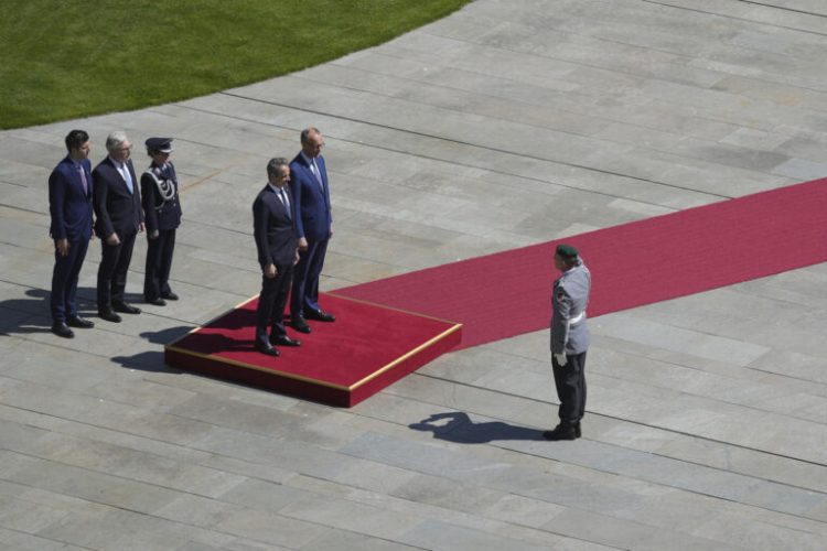 Ο πρωθυπουργός Κυριάκος Μητσοτάκης έγινε δεκτός με στρατιωτικές τιμές, ενώ είναι ο πρώτος ηγέτης που υποδέχεται ο νέος καγκελάριος από την ανάληψη των καθηκόντων του. Αυτή την ώρα βρίσκονται σε εξέλιξη οι διμερείς συνομιλίες και η κοινή συνέντευξη Τύπου έχει προγραμματιστεί για τις 14:30 (ώρα Ελλάδος).