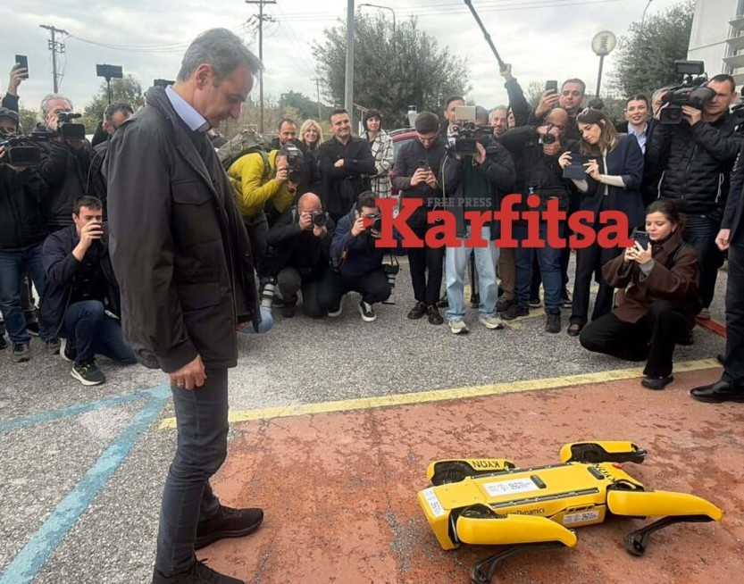 Τον Κυριάκο Μητσοτάκη υποδέχθηκαν η διοίκηση του Κέντρου και διακεκριμένοι επιστήμονες, οι οποίοι τον συνόδεψαν σε μια αναλυτική ξενάγηση στους χώρους. Στην είσοδο ήταν και το ρομπότ-σκύλος “Κύων”. Πρόκειται για ένα ρομπότ το οποίο μπορεί να συμμετέχει μεταξύ άλλων σε επιχειρήσεις απεγκλωβισμού ατόμων από φυσικές καταστροφές.