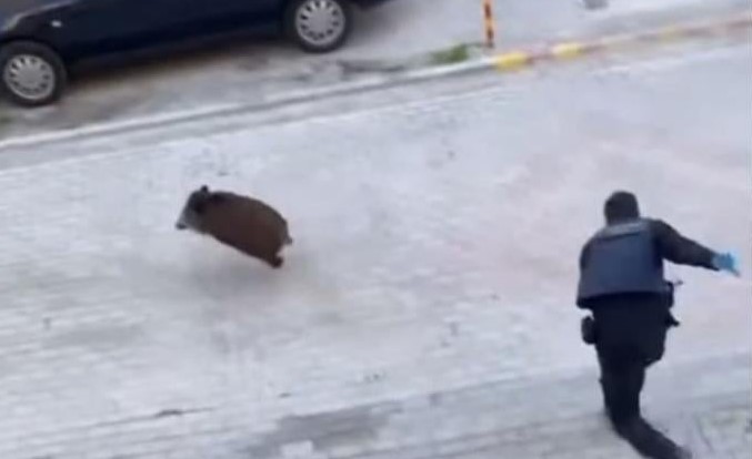Στον Εύοσμο εκτυλίχθηκαν σκηνές που θύμιζαν… κωμική ταινία, όταν ένα μικρό αγριογούρουνο αποφάσισε να εξερευνήσει το κέντρο της πόλης.