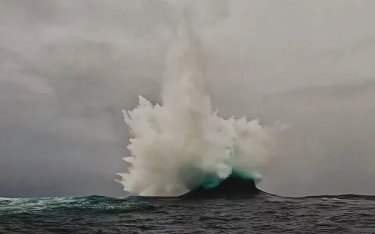 Όπως μετέδωσε το ABC Australia, η σύγκρουση αυτή προκάλεσε μια θεαματική στήλη θαλασσινού νερού που έφτασε έως και τα 40 μέτρα ύψος. Η δύναμή της ήταν τόσο μεγάλη, που το νερό χτύπησε ακόμη και το drone που κατέγραφε το συμβάν από ψηλά.