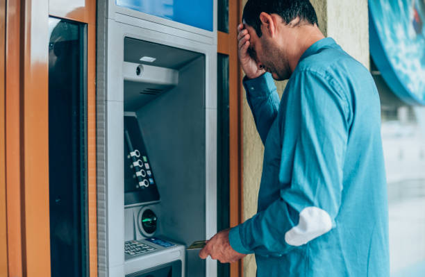 Stressful businessman holding his head because he doesn't have enough money on his credit card.
