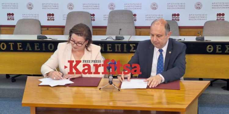 Πρόκειται, όπως γράφει η Karfitsa.gr,για το πρώτο πανεπιστήμιο της Ελλάδας που αποκτά έδρα Κυπριακών Σπουδών και το μεσημέρι της Τρίτης 24/06 υπεγράφη μνημόνιο συνεργασίας μεταξύ του ΑΠΘ και του κυπριακού υπουργείου Παιδείας. Το μνημόνιο υπέγραψαν ο νέος πρύτανης του ΑΠΘ, Κυριάκος Αναστασιάδης και η υπουργός Παιδείας, Αθλητισμού και Νεολαίας της Κυπριακής Δημοκρατίας, Δρ. Αθηνά Μιχαηλίδου.